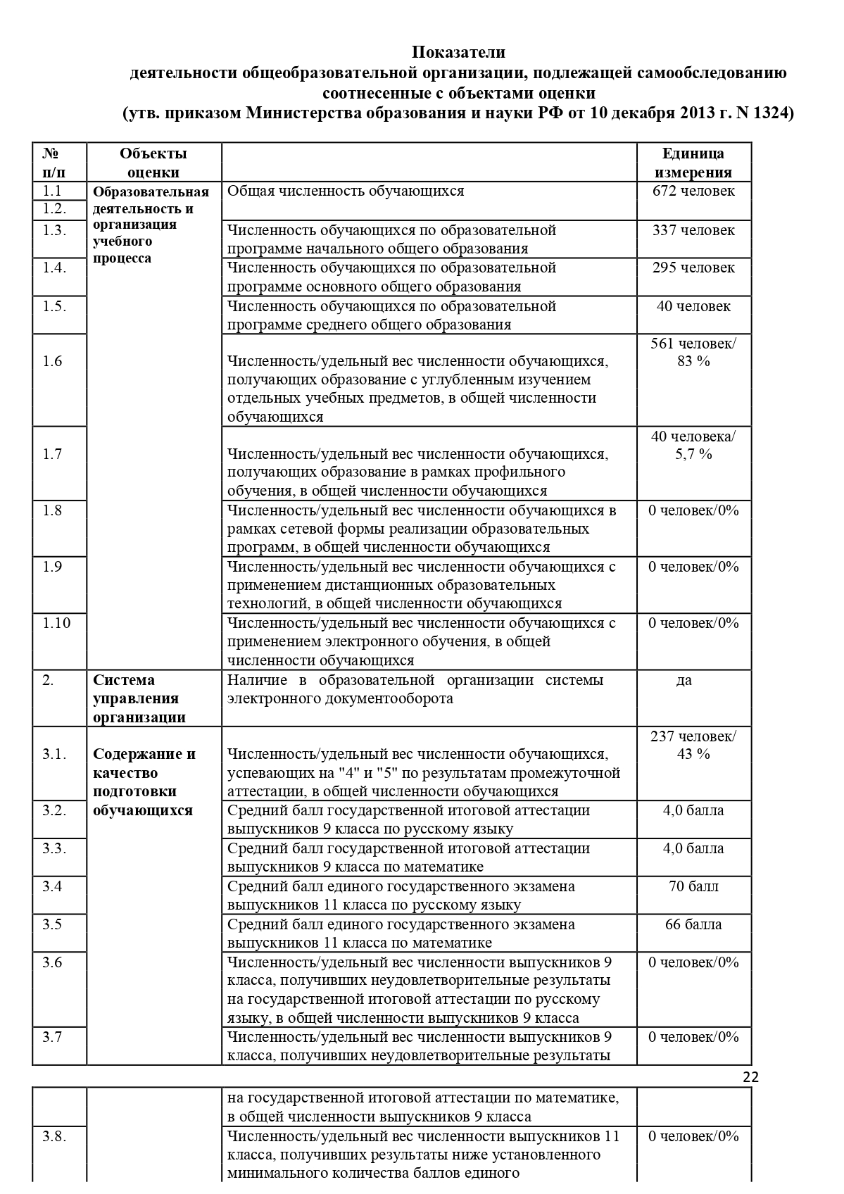 Пунктом 3 ч. 3 ст. 28 Федерального закона №273-ФЗ от 29.12.2012 г «Об образовании в Российской Федерации» установлена обязанность образовательной организации предоставлять отчет о результатах самообследования. Показатели деятельности образовательной организации, подлежащей самообследованию, а также и порядок его проведения установлены Министерством образования и науки Российской Федерации (приказ от 14.06.2013 г №462 «Об утверждении порядка проведения самообследования образовательной организацией», приказ от 10.12.2013 г №1324 «Об утверждении показателей деятельности образовательной организации, подлежащей самообследованию»).