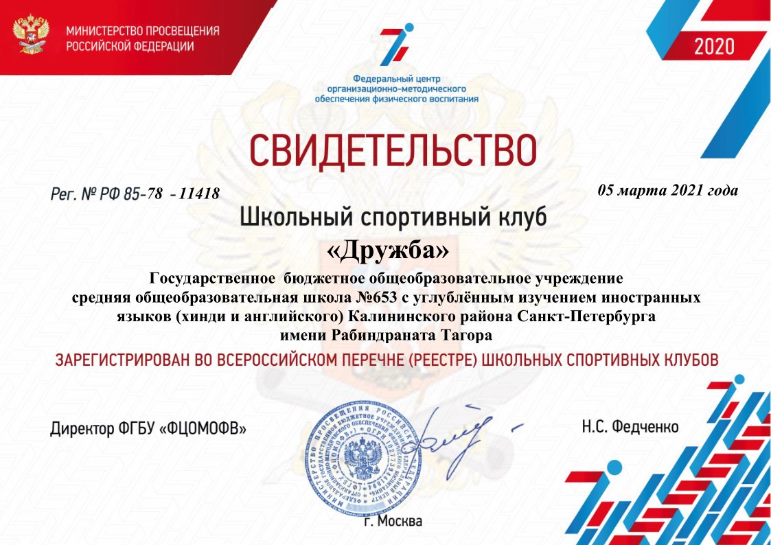 - Положение о Совете школьного спортивного клуба «Дружба»